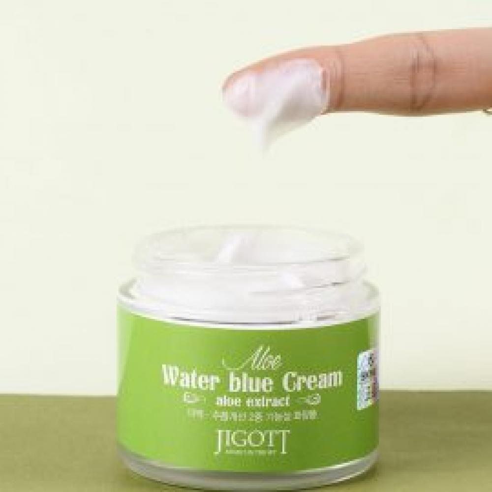 ALOE WATER BLUE CREAM Крем для лица ТМ JIGOTT Крем на основе экстракта листьев алое вера - это мощный стимулятор клеточной регенерации, обладает успокаивающим и антиоксидантным эффектом, увлажняет, восстанавливает поврежденные клетки. Аллантоин и растительный комплекс из экстрактов зеленого чая, листьев алое и томата оказывают противовоспалительное действие, успокаивают кожу и стимулируют процессы регенерации. Ниацинамид и аденозин осветляют, повышают эластичность и дарят сияние коже.