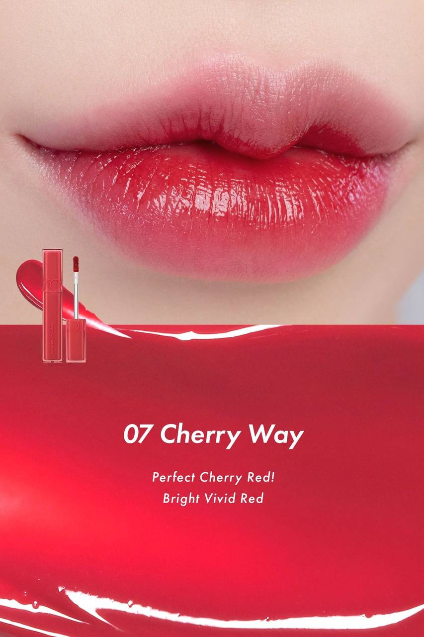 Глянцевый тинт для губ ROM&ND Dewyful Water Tint 07.CHERRY WAY - это пигментированный жидкий флюид, который придает губам легкий оттенок.